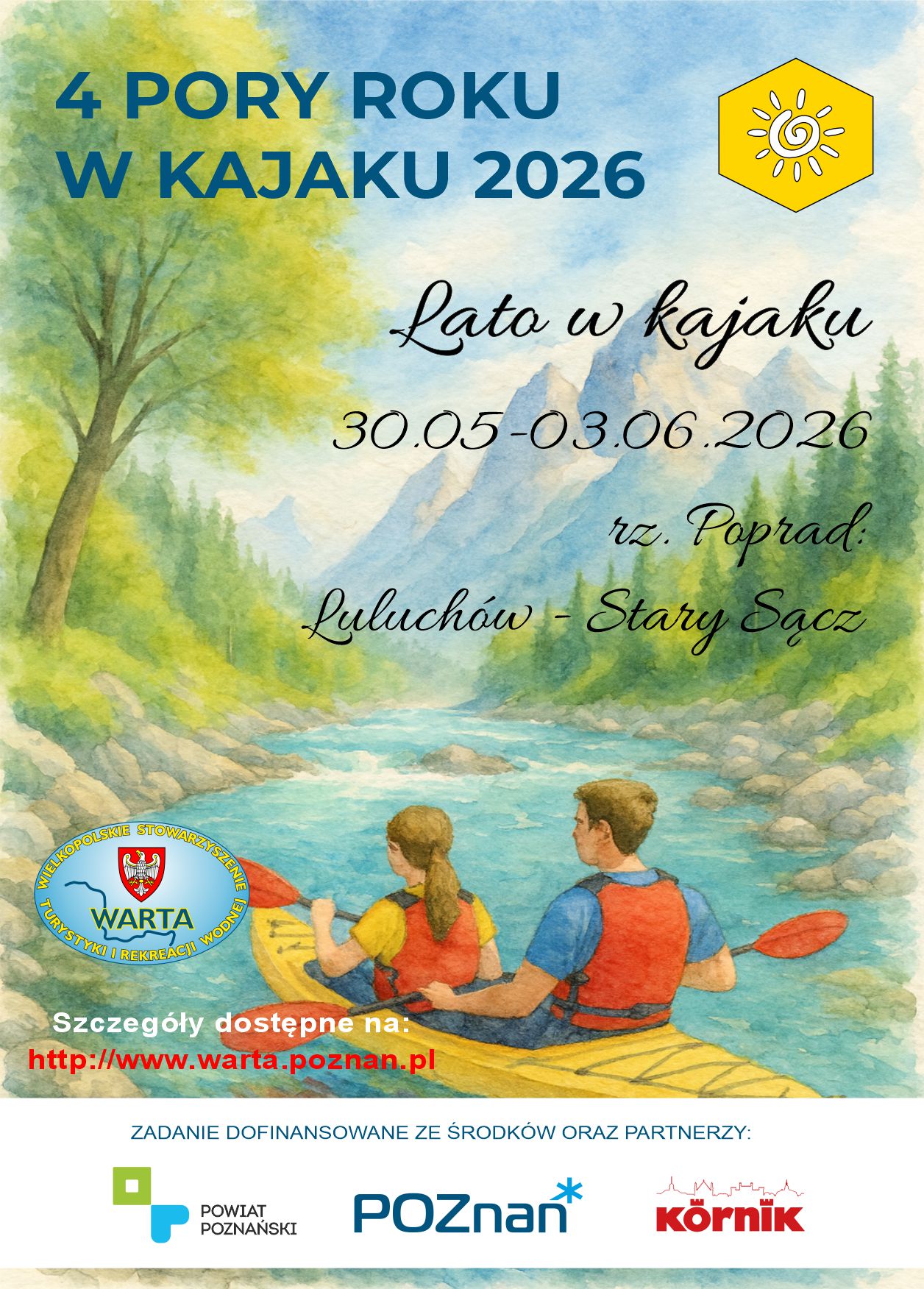 4 Pory Roku w kajaku to cykl spływów kajakowych pozwalających poznać szlaki wodne, ciekawe miejsca, zabytki oraz przyrodę Wielkopolski i nie tylko w 4 pory roku.